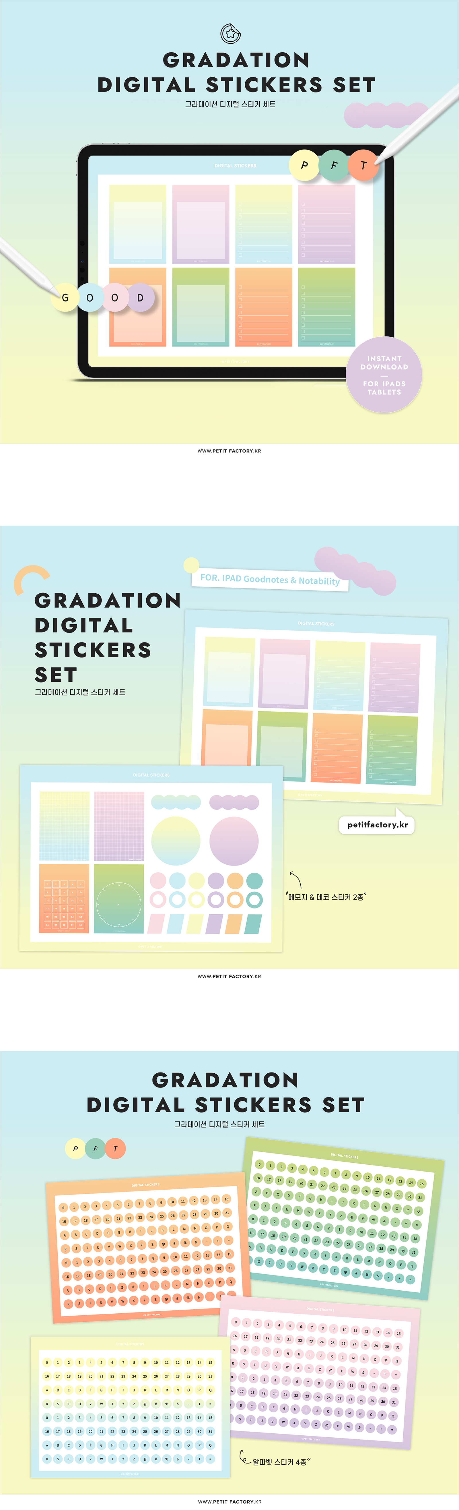 그라데이션 디지털 스티커 세트