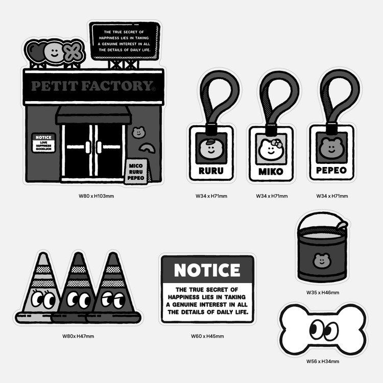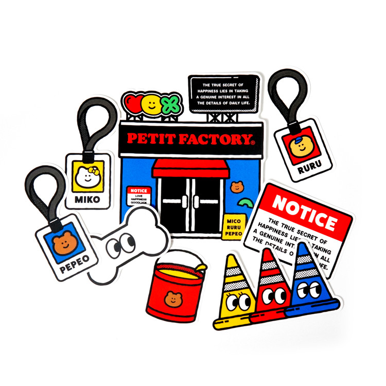 쁘띠팩토리 크루인 미코, 루루, 페퍼는 한 동네에서 자란 친구들로 어른이 된 후 어린 시절의 즐거움을 찾기 위해 쁘띠팩토리 공장을 세우고 제품들을 통해 평범했던 일상의 작은 즐거움을 제공합니다.